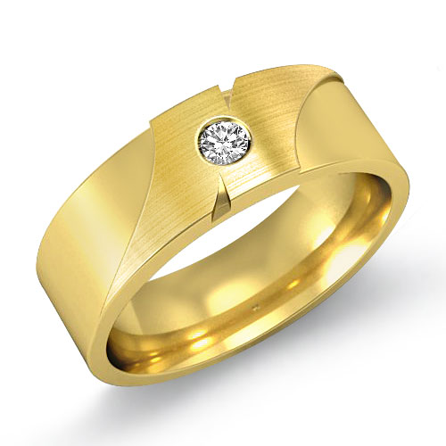 Designer diamond men's half wedding band is made from 18k Gold Yellow. This ring features polished and matte finished with round cut diamond set in a bezel setting.