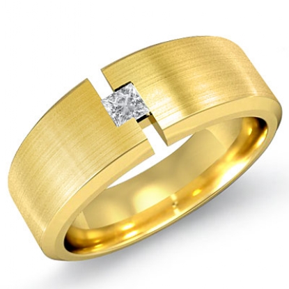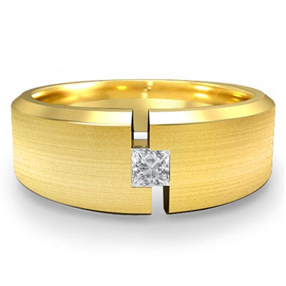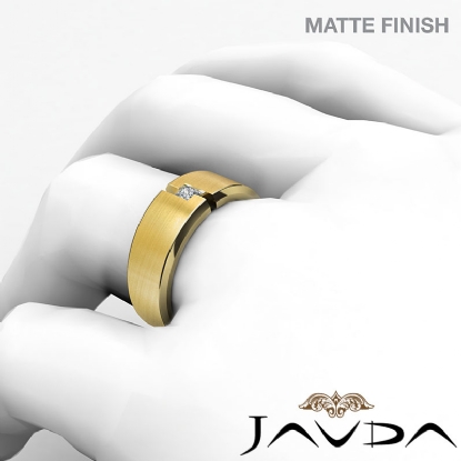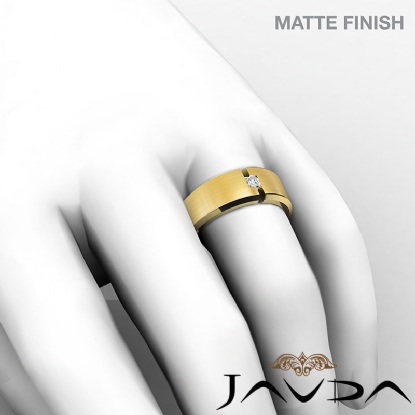 Solitaire Princess Bezel Diamond Matte Men's Half Wedding Band 18k Gold (0.15Ct. tw.)
