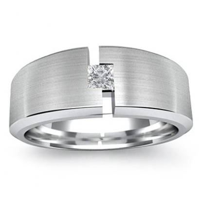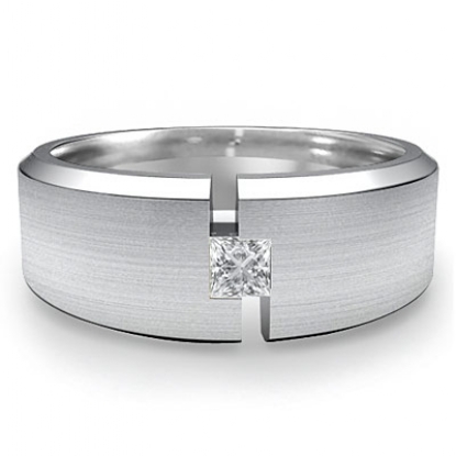 Solitaire Princess Bezel Diamond Matte Men's Half Wedding Band Platinum (0.15Ct. tw.)