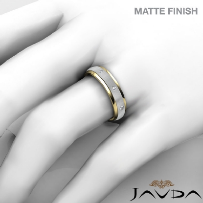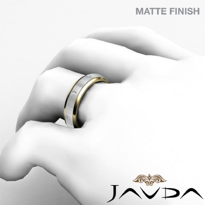 Step Edge Men's Diamond Eternity Matte Wedding Band 14k 2 Tone Gold 0.16 Ct