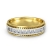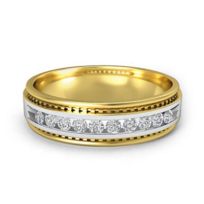 The luxurious diamond men's half wedding band is made from 14k 2 tone gold. Featuring polished yellow gold round edges with 0.20 carat round cut diamonds set in a channel setting. This 6mm wedding ring for him is comfort fit and available in 14k & 18k 2 tone gold.