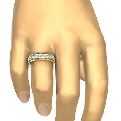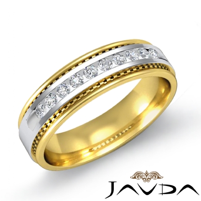 Channel Diamond Men's Wedding Band Round Edges 14k 2 Tone Gold 0.20 Ct