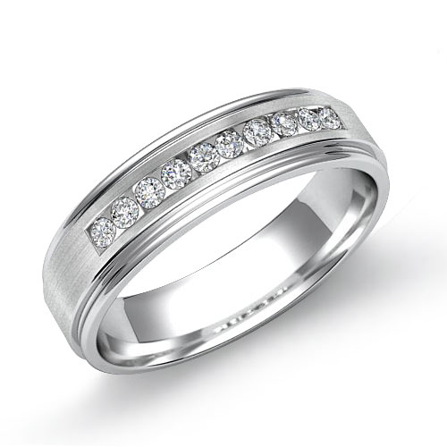 Channel Diamond Brushed Finish Men's Wedding Band 18k W Gold (0.2Ct. tw.)