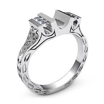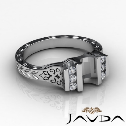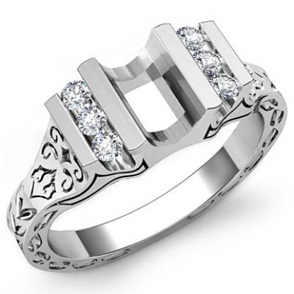 Carved Design Emerald Diamond Engagement Ring Setting Platinum (0.2Ct. tw.)