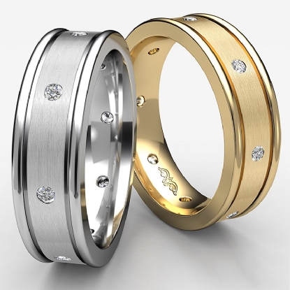 This unique design wedding ring for him is comfort fit and available in 14k & 18k white gold, yellow gold and rose gold & platinum 950.