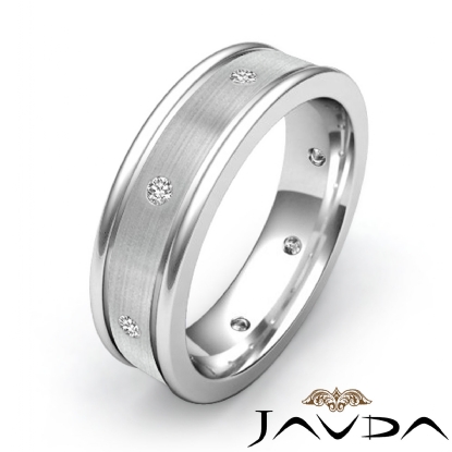 Brushed Center Bezel Diamond Men's Eternity Wedding Band 14k White Gold 0.20 Ct