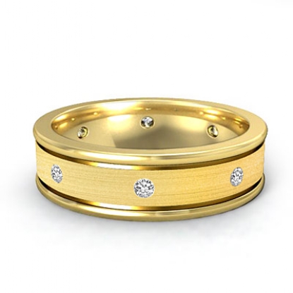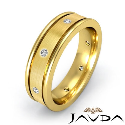 Brushed Center Bezel Diamond Men's Eternity Wedding Band 14k Gold (0.2Ct. tw.)