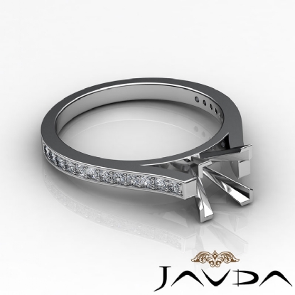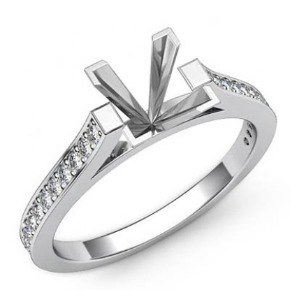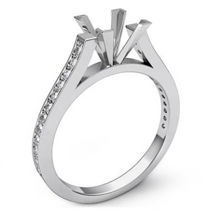 Classy in design, this 0.25ct. diamond engagement ring is made in 14K white gold. It features a princess semi mount in prong setting, with smaller pave set round diamonds that sparkle the shank.
