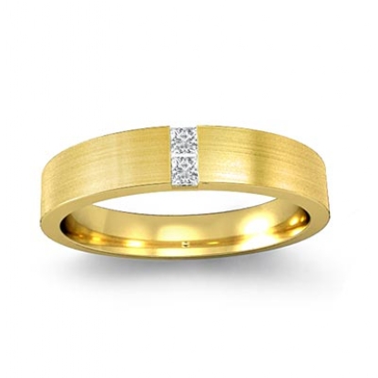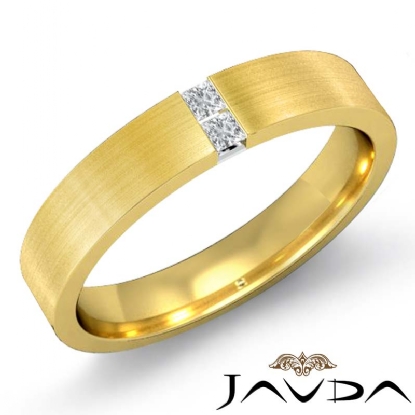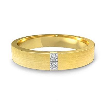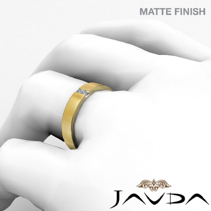 Matte finish diamond men's half wedding band is crafted in 14k Gold Yellow. This wedding ring features matte finished with princess cut diamonds set in a channel setting.