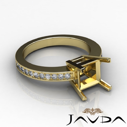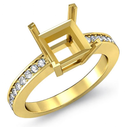 Gorgeously designed, this diamond engagement ring is made in enduring 18k Gold Yellow. It showcases a princess semi mount in prong setting with twinkling pave set round diamonds along the shank. (0.25Ct. tw.)