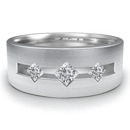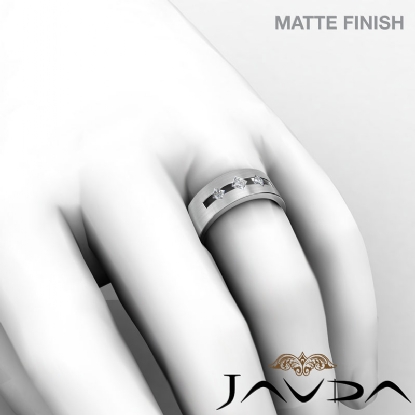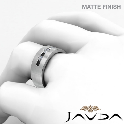 3Stone Princess Diamond Men's Matte Wedding Band 14k W Gold 0.30Ct