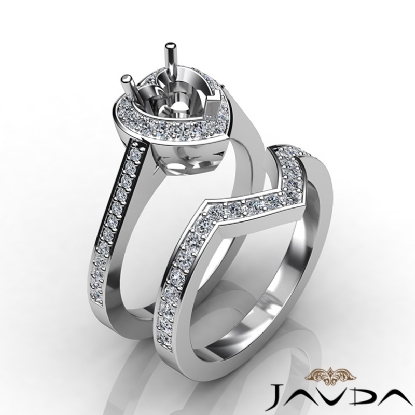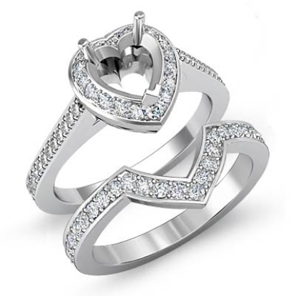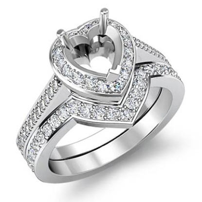 0.86 Ct Diamond Pave Heart Bridal Sets Ring 14K White Gold Semi Mount