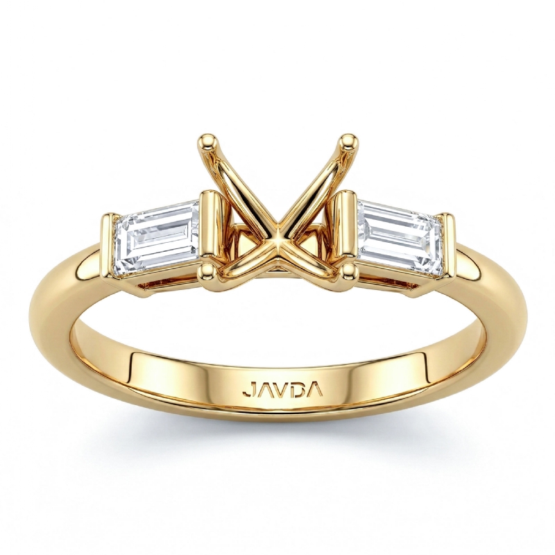 Side 0.30 ctw. Baguette Diamond Baguette Diamond 3 Stone Engagement & Anniversary Ring Setting made in 14k Gold Yellow for Round Cut in a Semi Mount. (0.3Ct. tw.)