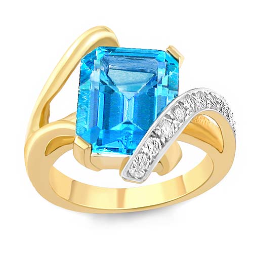Emerald Blue Tpz Gemstone Diamond fashion Ring 14k Gold (0.3Ct. tw.)