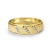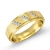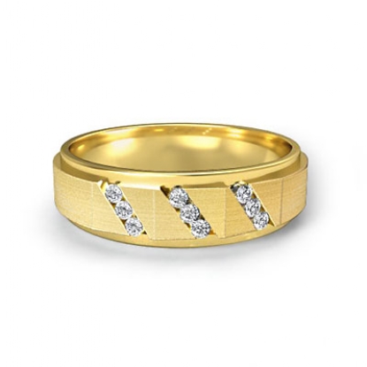 This diagonal tripple row diamond men's half wedding band is made from 14k Gold Yellow. Featuring polished step edge and matte finished center with 3 row round diamonds in a channel set.