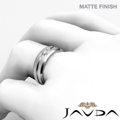3 Stone Grooved Matte Diamond Men's Half Wedding Band 14k White Gold 0.30 Ct