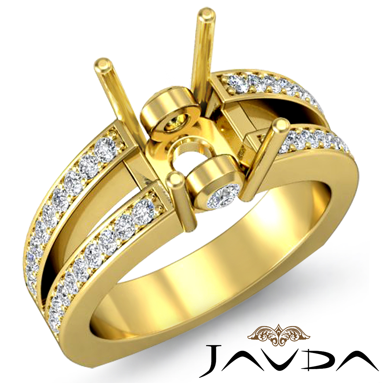 Declare your love with this fanciful diamond engagement ring made in 18k Gold Yellow. It showcases a round semi mount in prong setting with pave set diamonds sparkling along the shank. (0.35Ct. tw.)