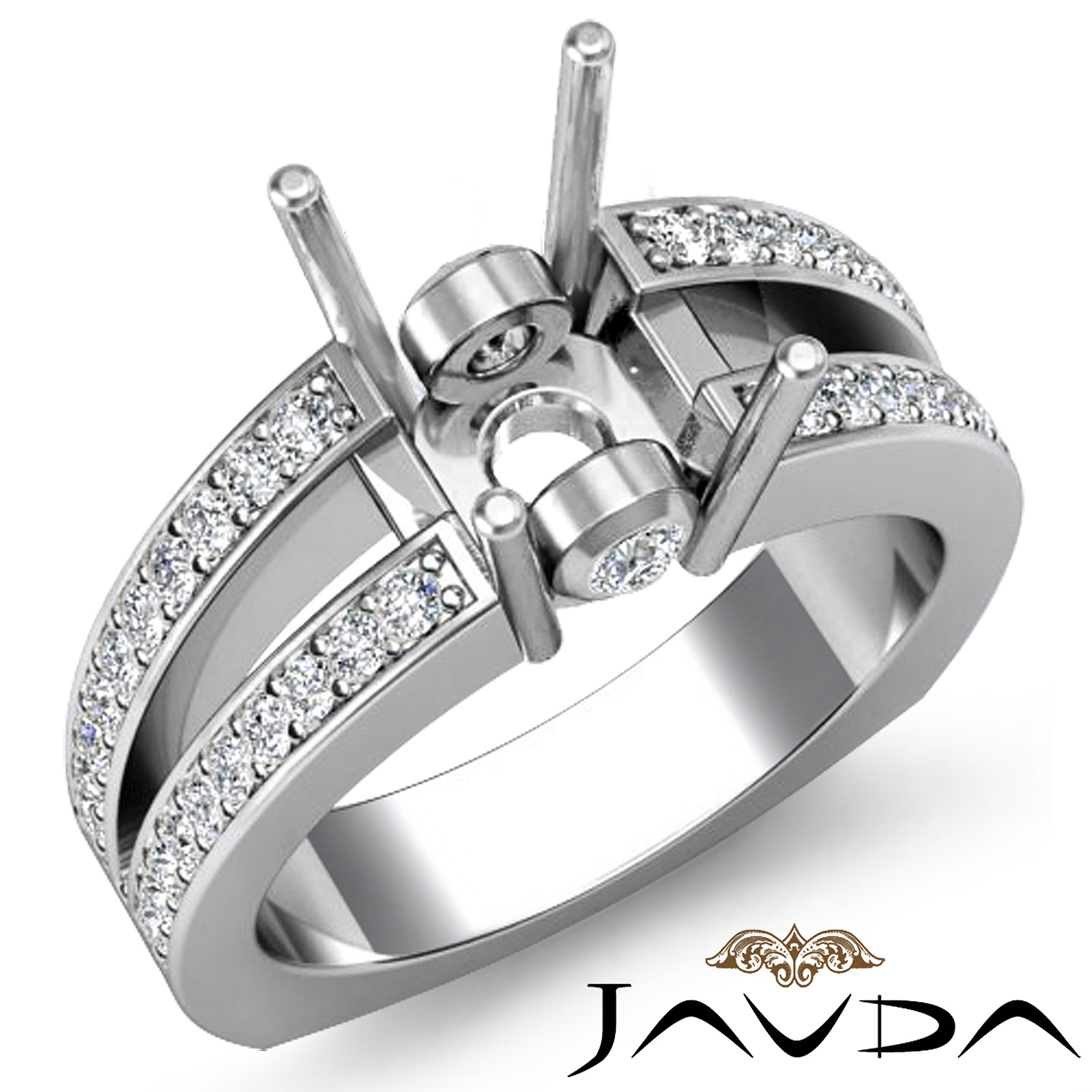 Round Side Diamond Engagement Ring Classic Platinum Semi Mount (0.35Ct. tw.)