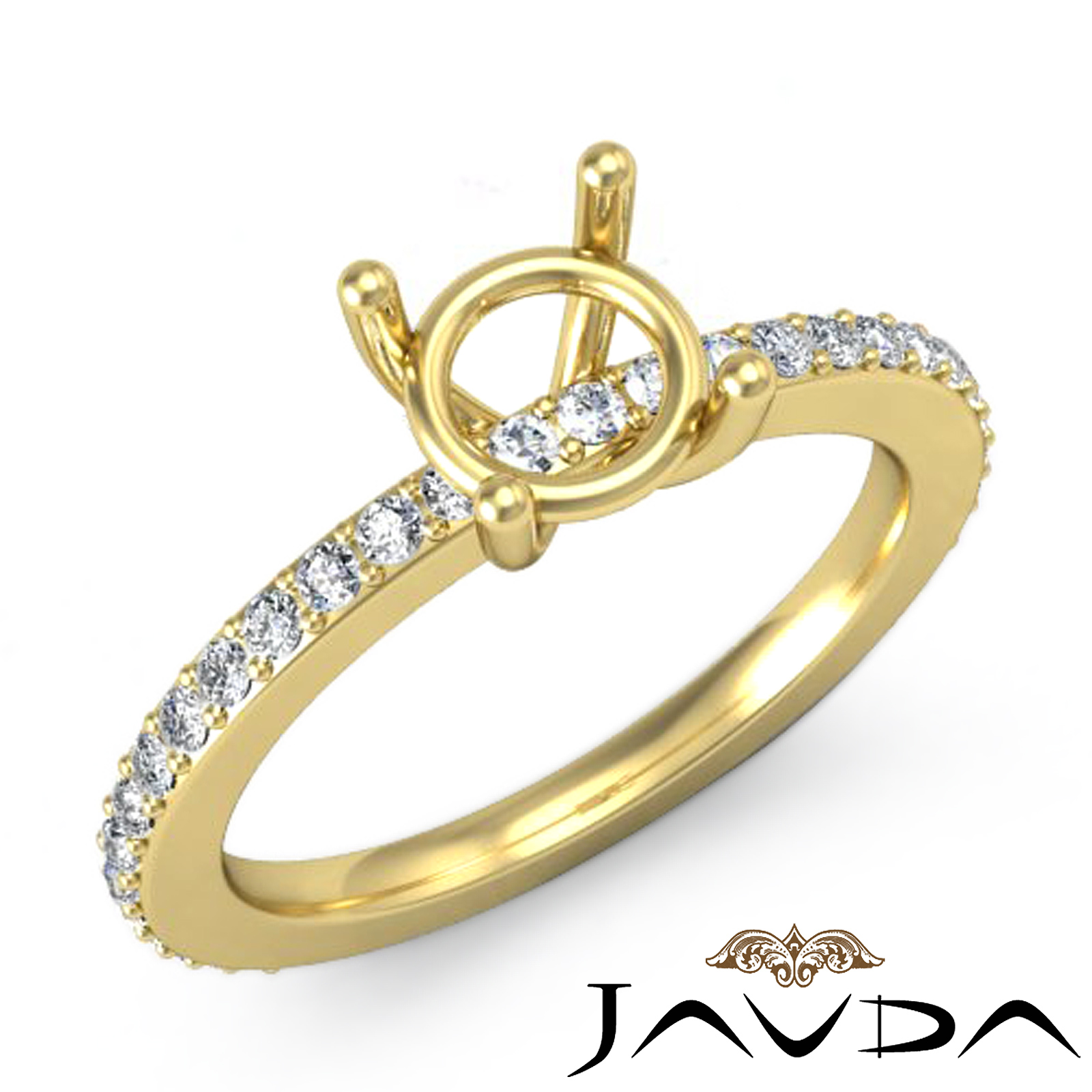Chic in design, this diamond engagement ring is made in 14k Gold Yellow. It features round semi mount in prong, with pave set round diamonds along the shank. (0.35Ct. tw.)
