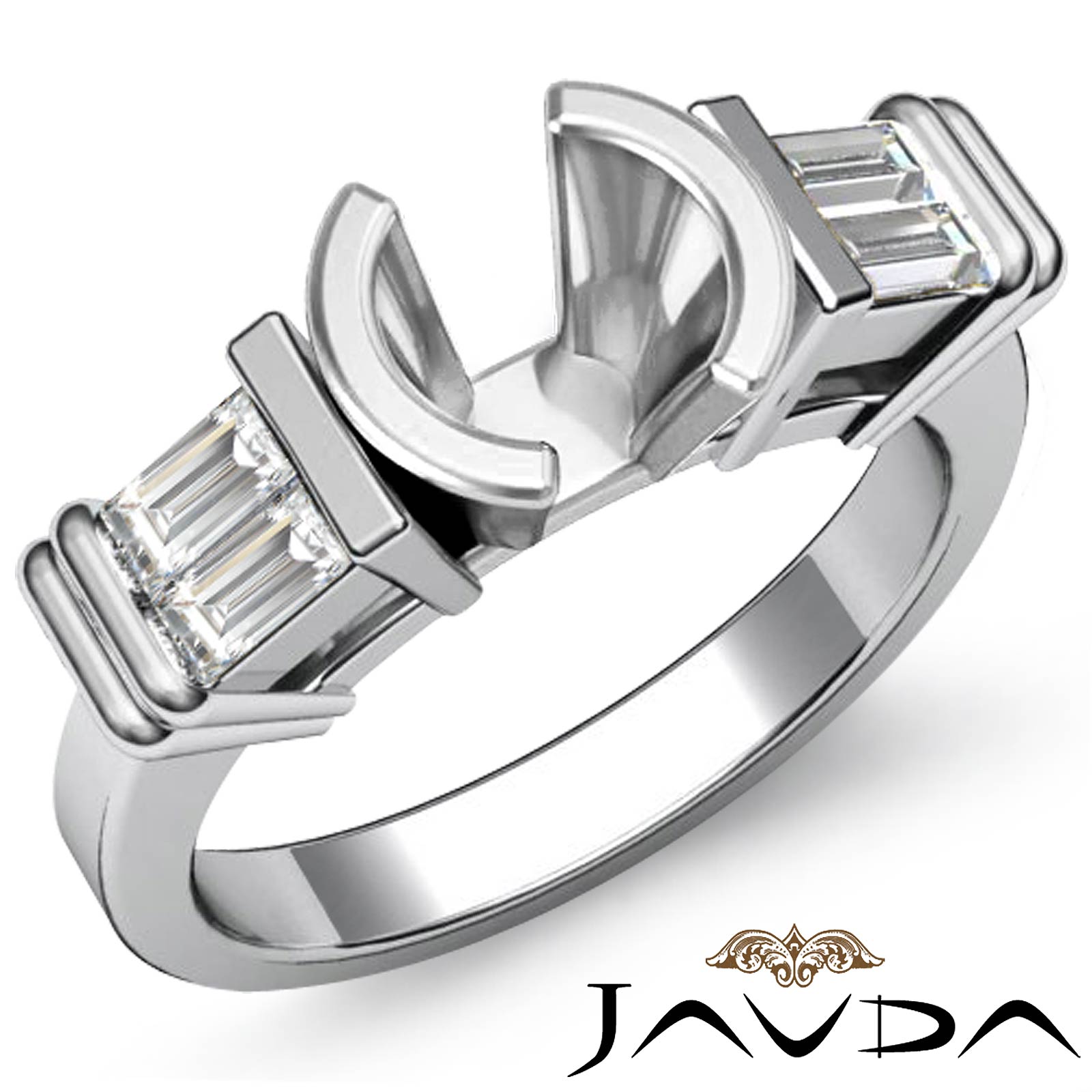 Baguette Round Diamond 3Stone Engagement Ring Setting 14k Gold 0.40Ct