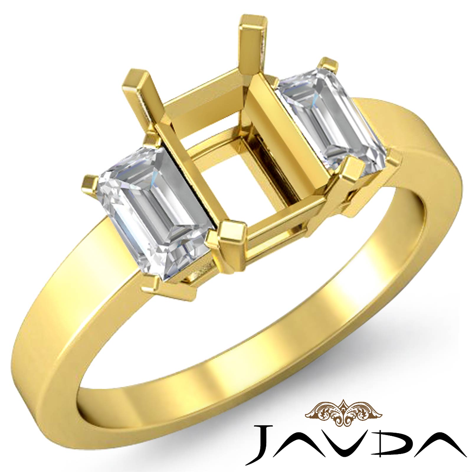 Side 0.40 ctw. Emerald Diamond Side Emerald Cut Diamond 3 Stone Anniversary & Engagement Ring Setting made in 14k Gold Yellow for Emerald Cut in a Semi Mount. (0.4Ct. tw.)