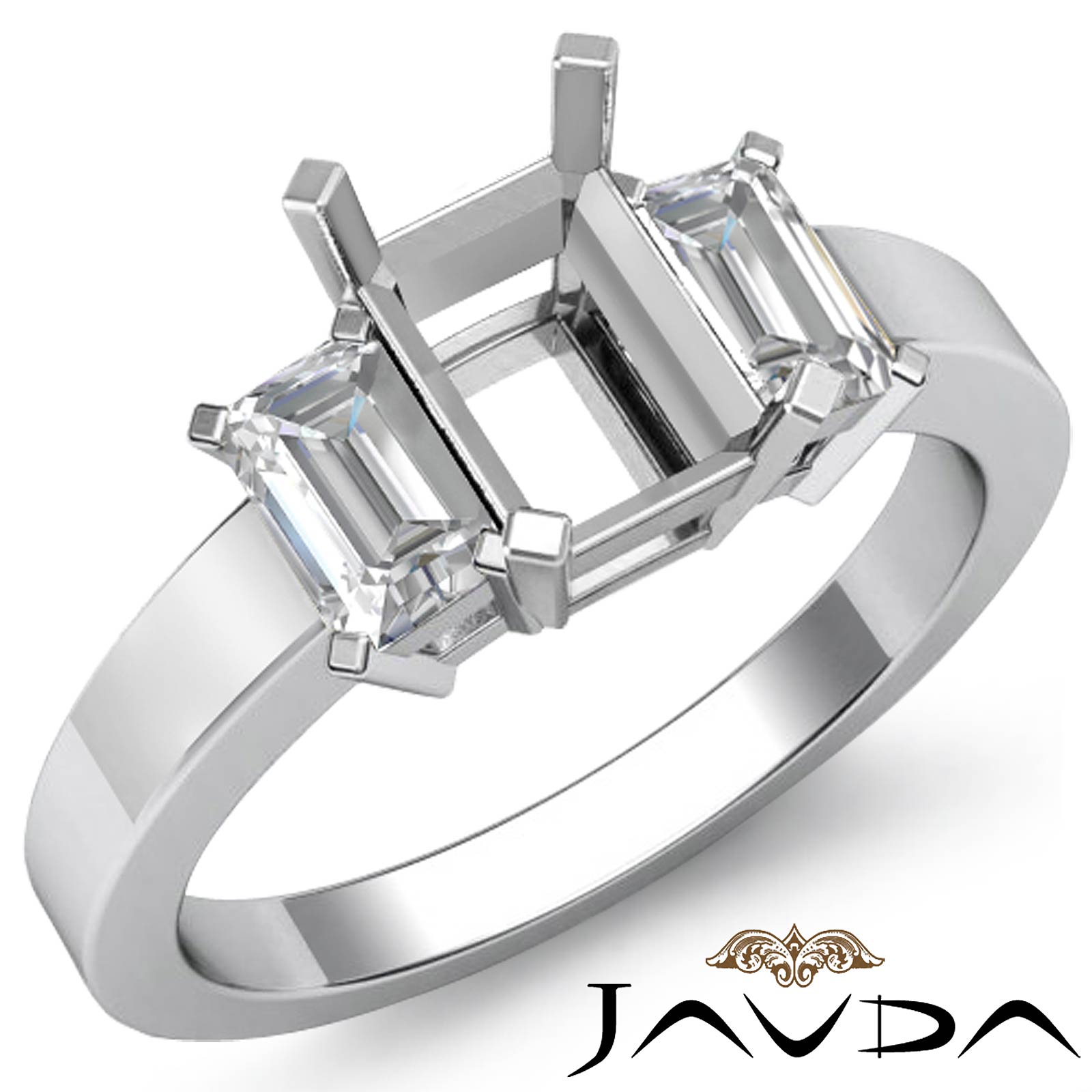 3 Stone Emerald Shape Diamond Semi Mount Ring Platinum (0.4Ct. tw.)