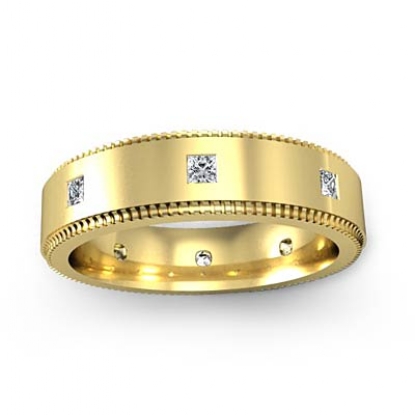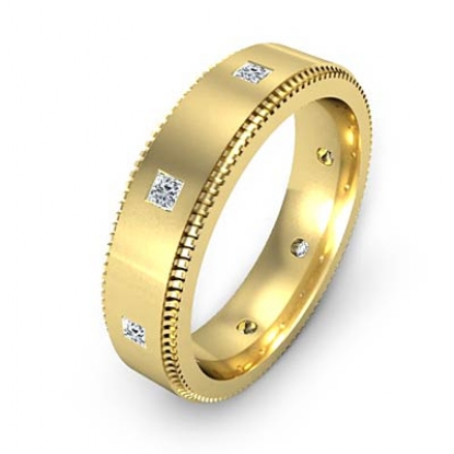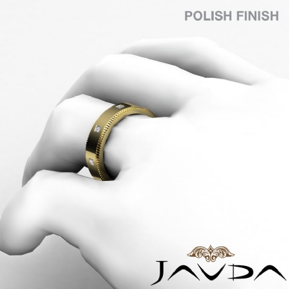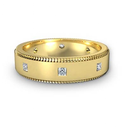 This polished finished diamond eternity men's wedding band made from solid 14k Gold Yellow. Featuring princess cut total diamonds set in a bezel setting with beautiful edges.