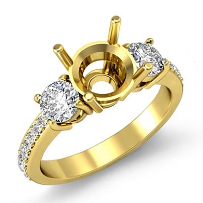 3 Stone Round Diamond Engagement Semi Mount Ring 14k Gold Pave (0.4Ct. tw.)