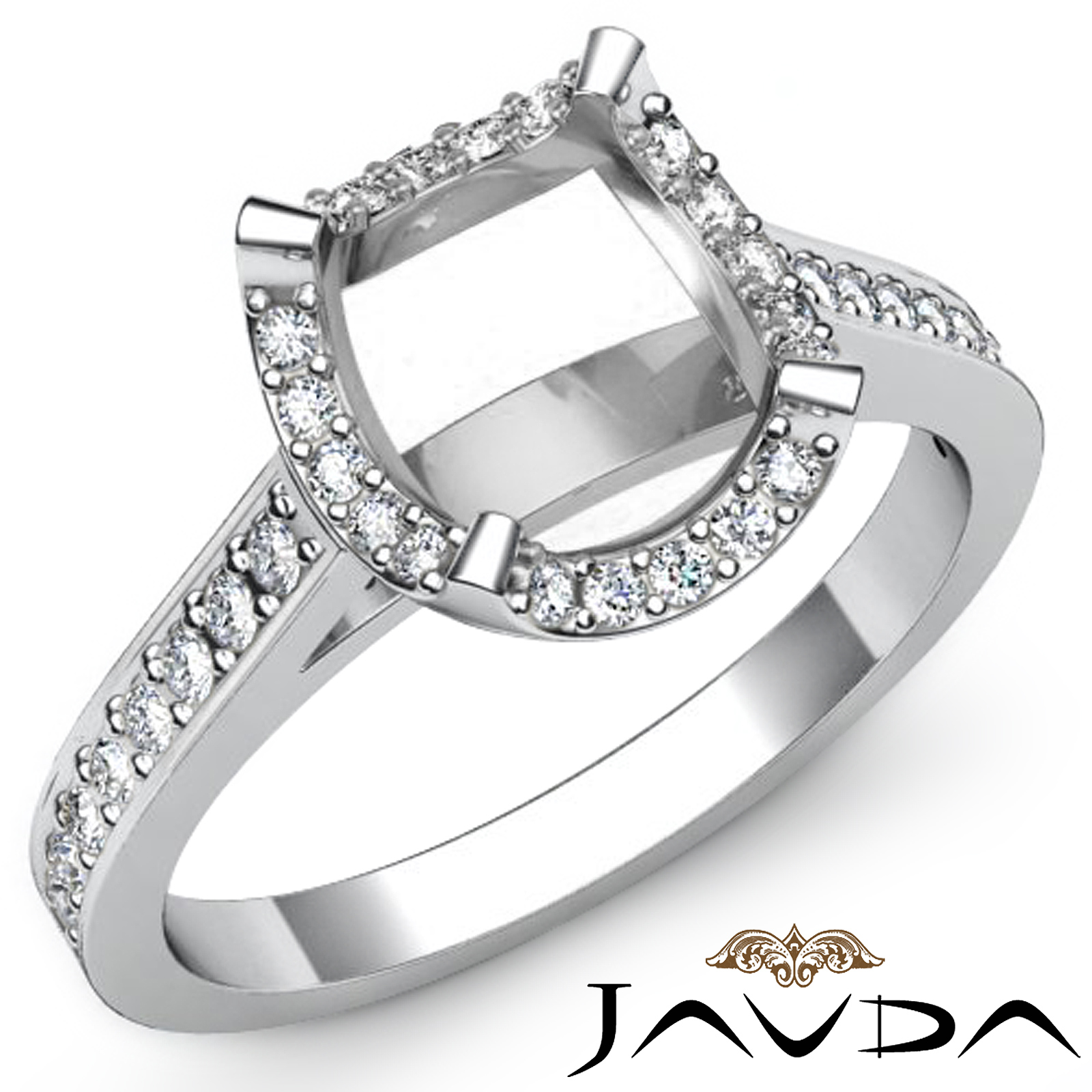 Diamond Engagement Ring Cushion Semi Mount 18k W Gold Halo Setting (0.4Ct. tw.)