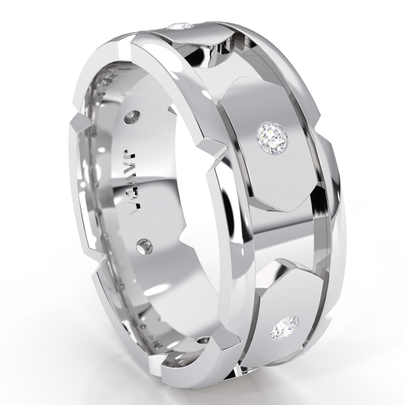 Available in 14k & 18k white gold, yellow gold and rose gold & platinum 950, this 8.5mm wide ring for him is comfort fit.