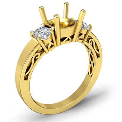 Oval Cut Diamond 3-stone Anniversary & Engagement Setting Ring made in 18k Gold Yellow for Round Cut in a Semi Mount. (0.45Ct. tw.)