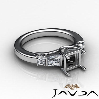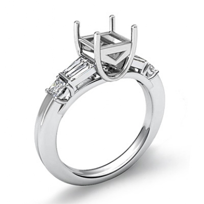 0.15 Carat Princess Diamond & 0.30 carat Baguette Diamond 3 Stone Engagement Semi Mount Ring Setting made in 14karat White Gold.