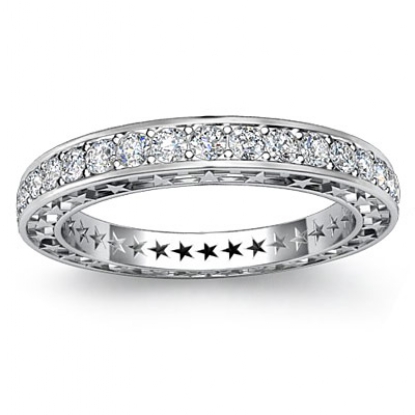 0.45 Carat Round Cut Diamond Eternity Wedding Ring Prong Set With Star all over in 14karat White Gold Band.