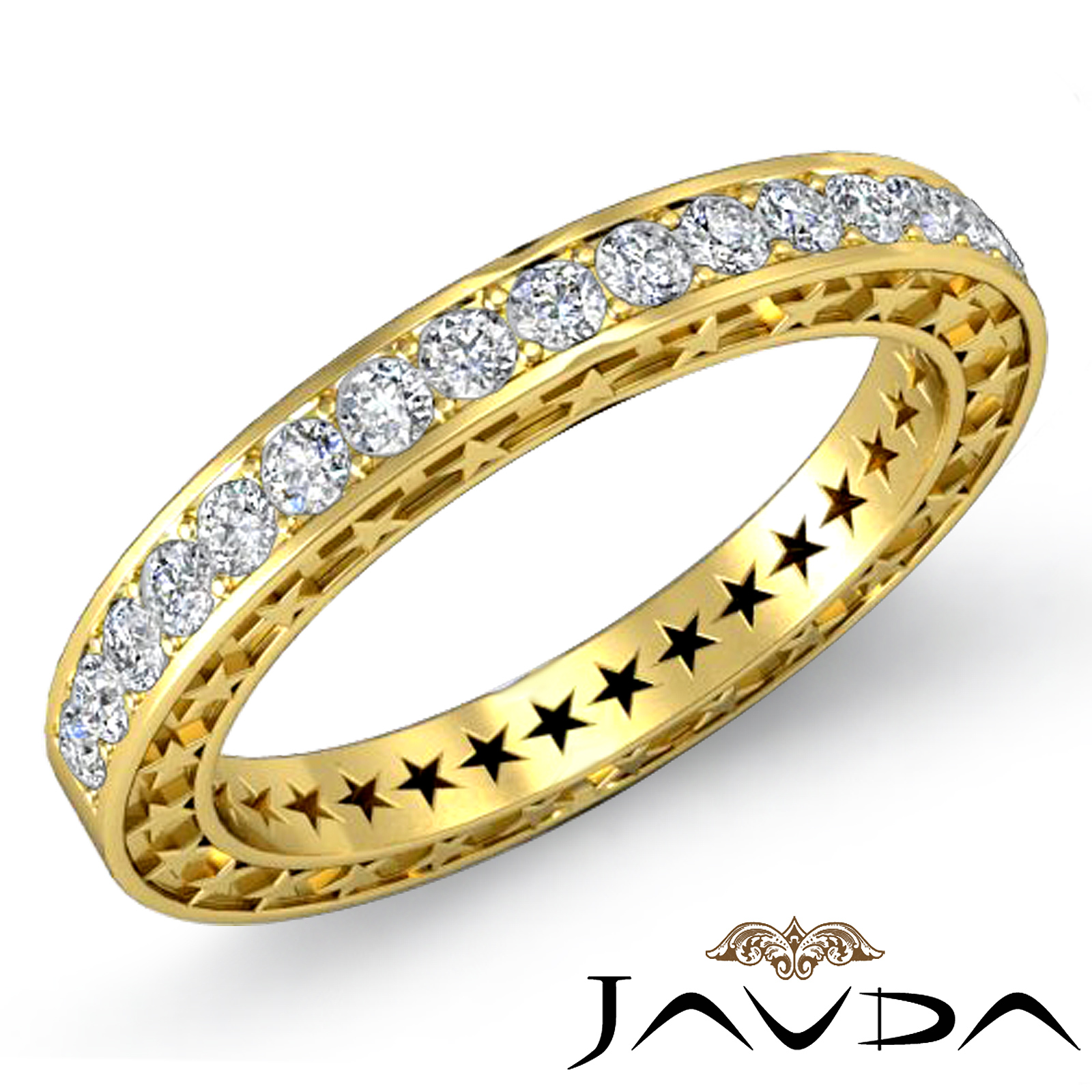 Round Cut Diamond Eternity Wedding Ring Prong Set With Star all over in 18k Gold Yellow Band. (0.45Ct. tw.)