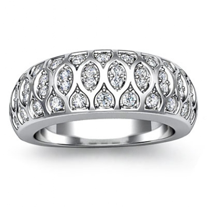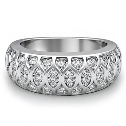 0.51 Carat Round Diamond Antique Half Wedding Ring Band made in 14 karat White Gold.