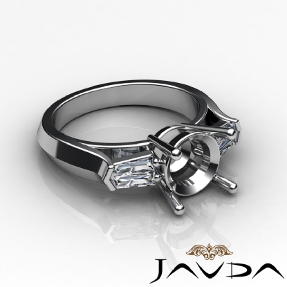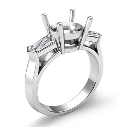 0.50 Carat Tappered Baguette Diamond 3 Stone Engagement Ring Setting For Round Diamond Semi Mount made in 14karat White Gold.