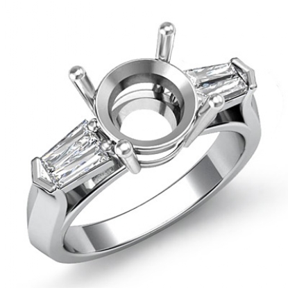 Baguette Round Diamond 3 Stone Engagement Ring Setting 14k Gold 1/2Ct