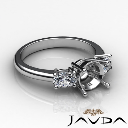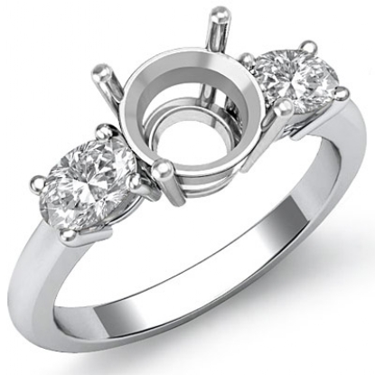 0.50 Carat Oval Cut Diamond 3 Stone Engagement Ring Setting for Round Diamond Semi Mount made in 14karat White Gold.