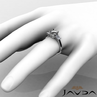 Diamond 3 Stone Engagement Oval Round Ring Semi Mount 14k W Gold 1/2Ct
