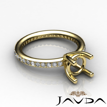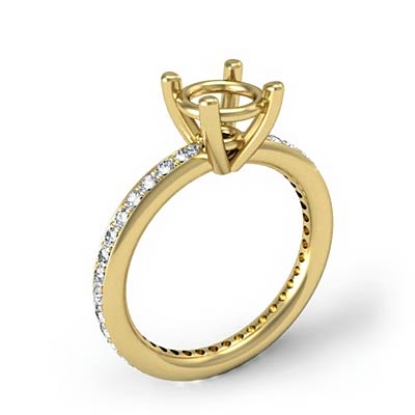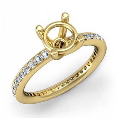 The gorgeous semi mount diamond engagement wedding ring features a center semi mount round diamond in prong setting and pave set diamonds along the shank. This set is made in 14k Gold Yellow. (0.5Ct. tw.)