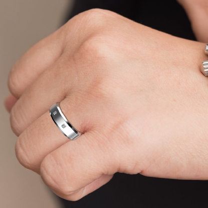 This solid ring is comfort fit and durable, available in 14k & 18k white gold, yellow gold and rose gold & platinum 950.