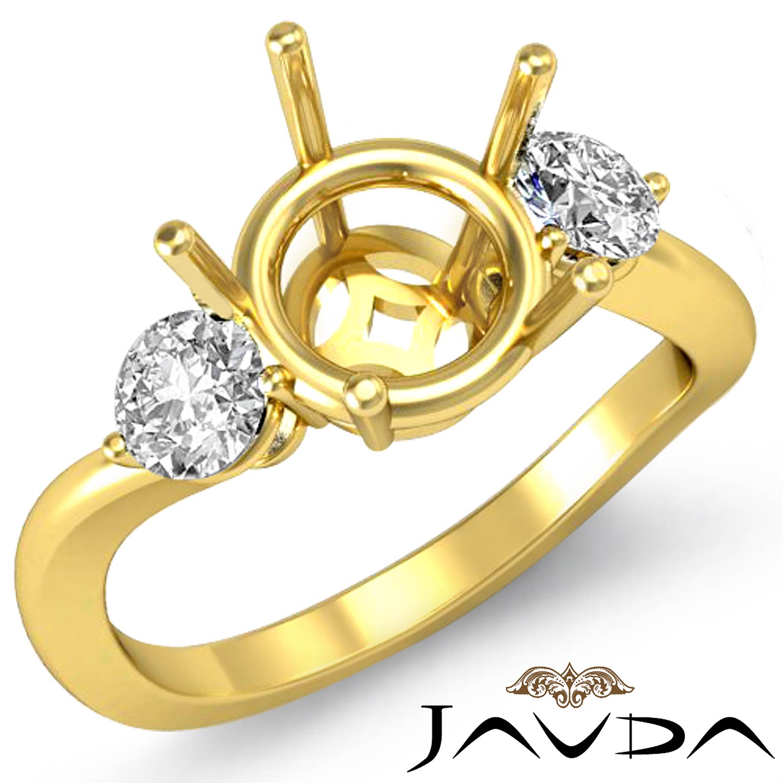 Round Diamond 3 Stone Engagement Ring Prong Setting made in 14k Gold Yellow for Round Cut in a Semi Mount. (0.5Ct. tw.)