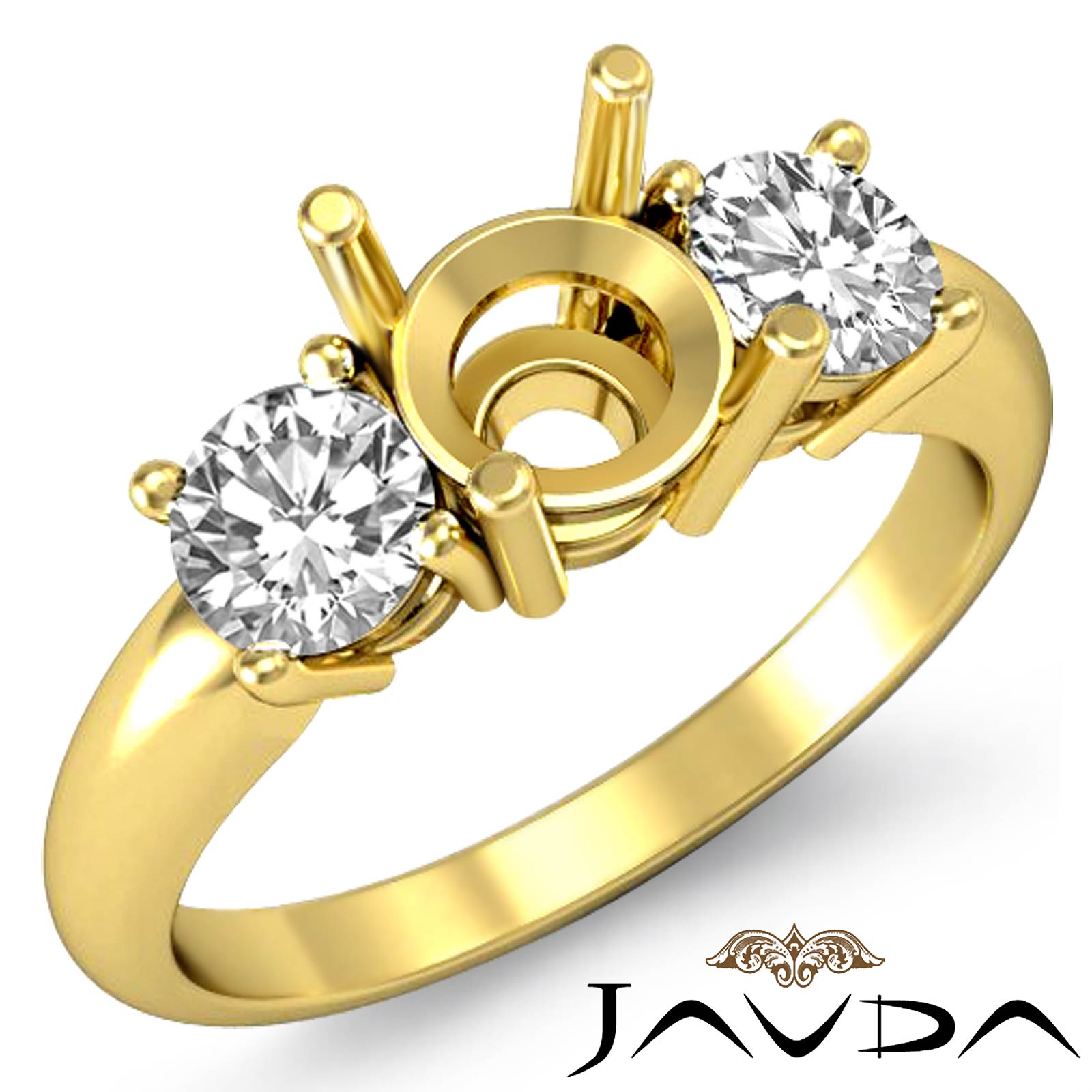 Round Diamond Three Stone Semi Mount Anniversary & Engagement Ring made in 14k Gold Yellow Prong Setting. (0.5Ct. tw.)