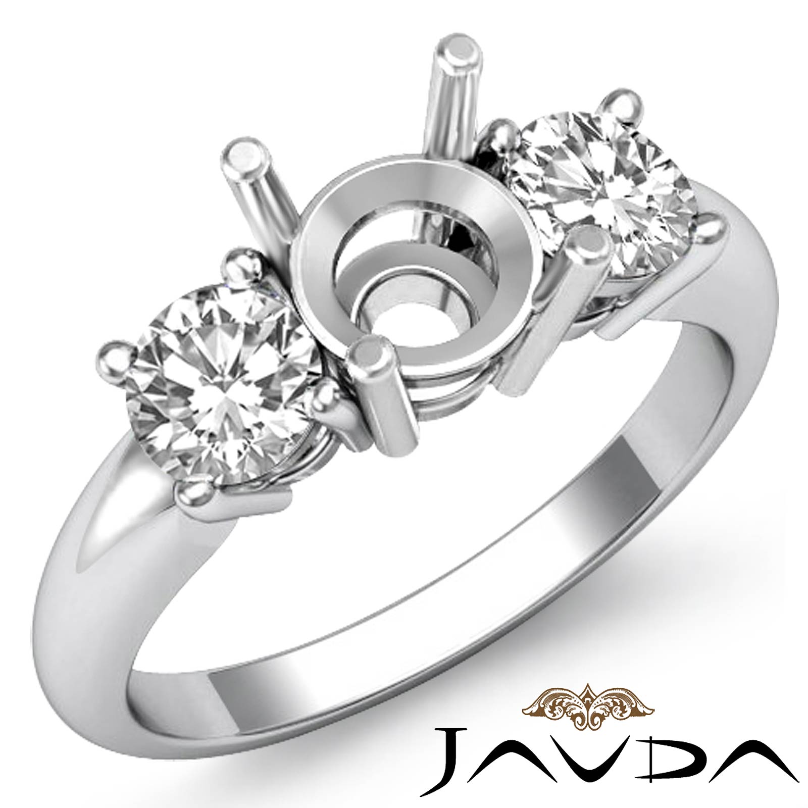 Round Diamond 3 Stone Semi Mount Engagement Ring Platinum (0.5Ct. tw.)