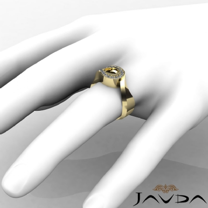 Undeniably striking, this semi mount diamond engagement ring is made in 14k Gold Yellow. It features round pave diamonds in sparkling brilliantly on the unique halo. (0.5Ct. tw.)