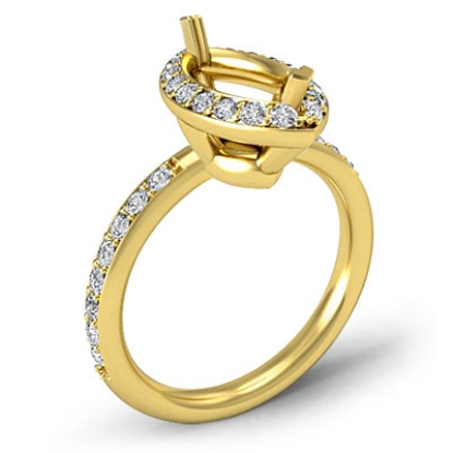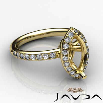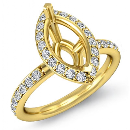 Forever timeless, this luxurious 18k Gold Yellow engagement ring has a marquise semi mount. It displays pave set round diamonds in halo & along the shank. (0.51Ct. tw.)