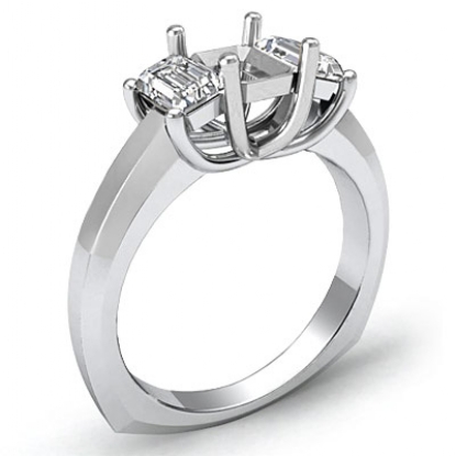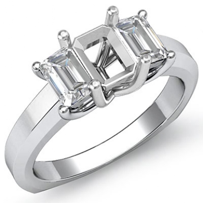 0.50 Carat Emerald Cut Diamond 3 Stone Engagement Ring Setting For Emerald-Cut Semi Mount made in 14k White Gold.