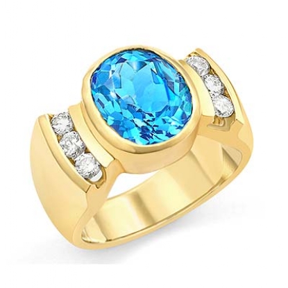 Oval Blue Topaz Gemstone Diamond Ring 14k Gold (0.55Ct. tw.)
