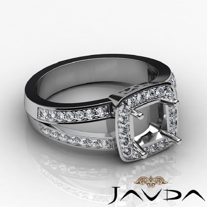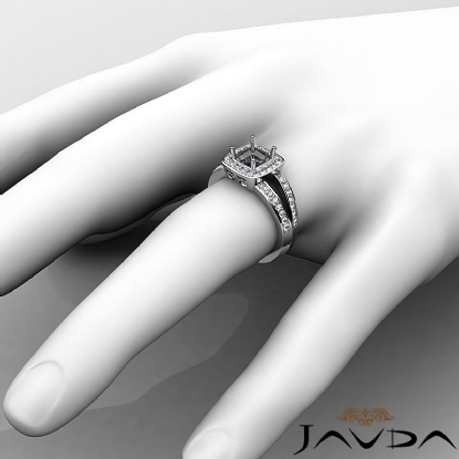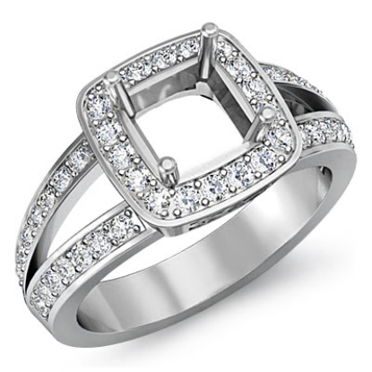 Bring brilliance to life?s great moments, with this semi mount diamond engagement ring, Made in 18k Gold White, its features of round pave set diamonds on halo and along the split shank. (0.55Ct. tw.)