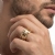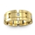 The timeless block link princess diamond men's eternity wedding band is made from precious metal 14k Gold Yellow. This handsome wedding ring features polished block link style with princess diamonds in a bezel setting.